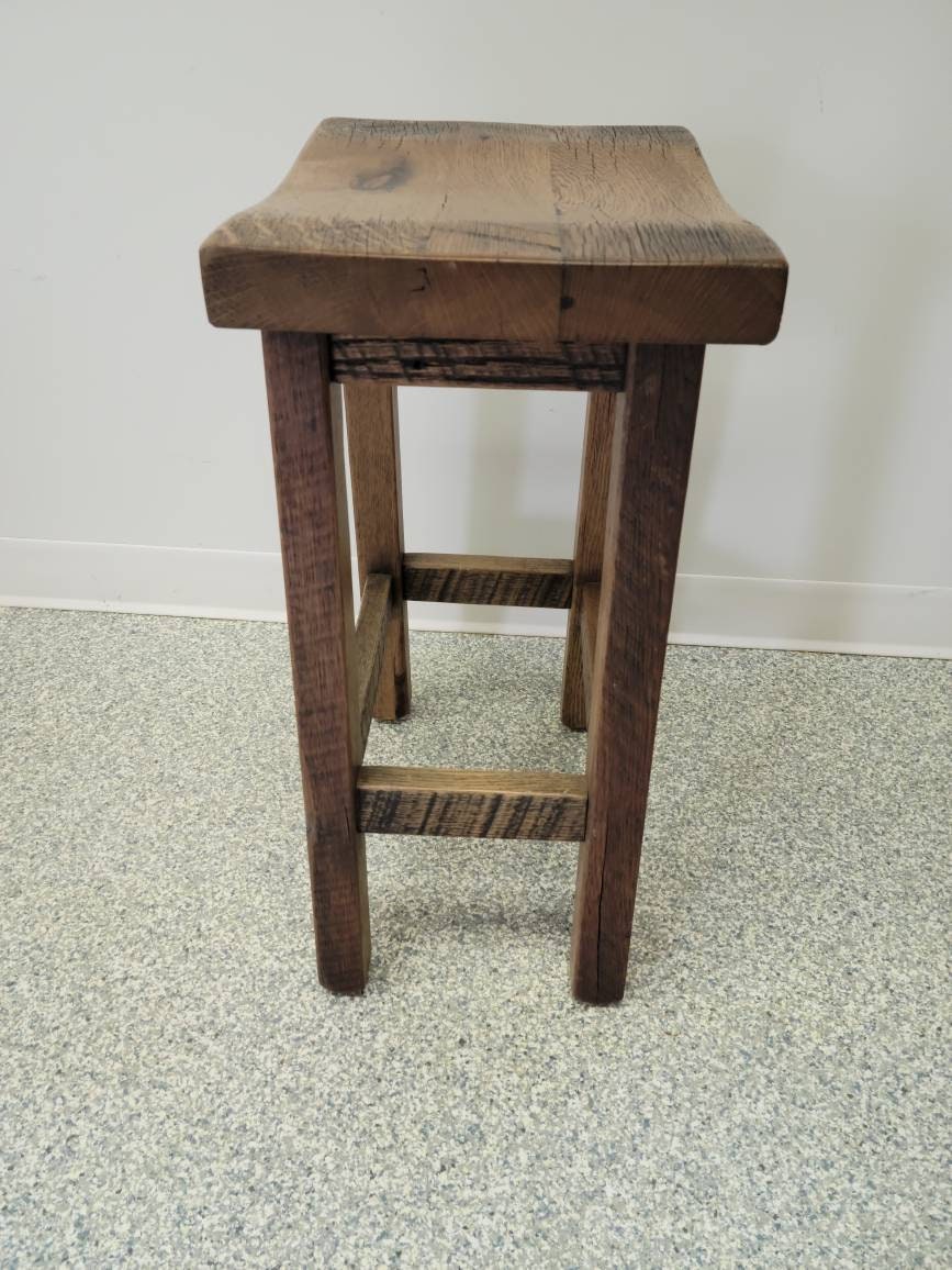 Reclaimed barnwood bar stools made with wood from 150 year old barns! Each stool has its own characteristics with saw marks and patina from years of weathering. Seat is dished out for your comfort. These bar stools are hand built and very solid but very easy to lift and move around.