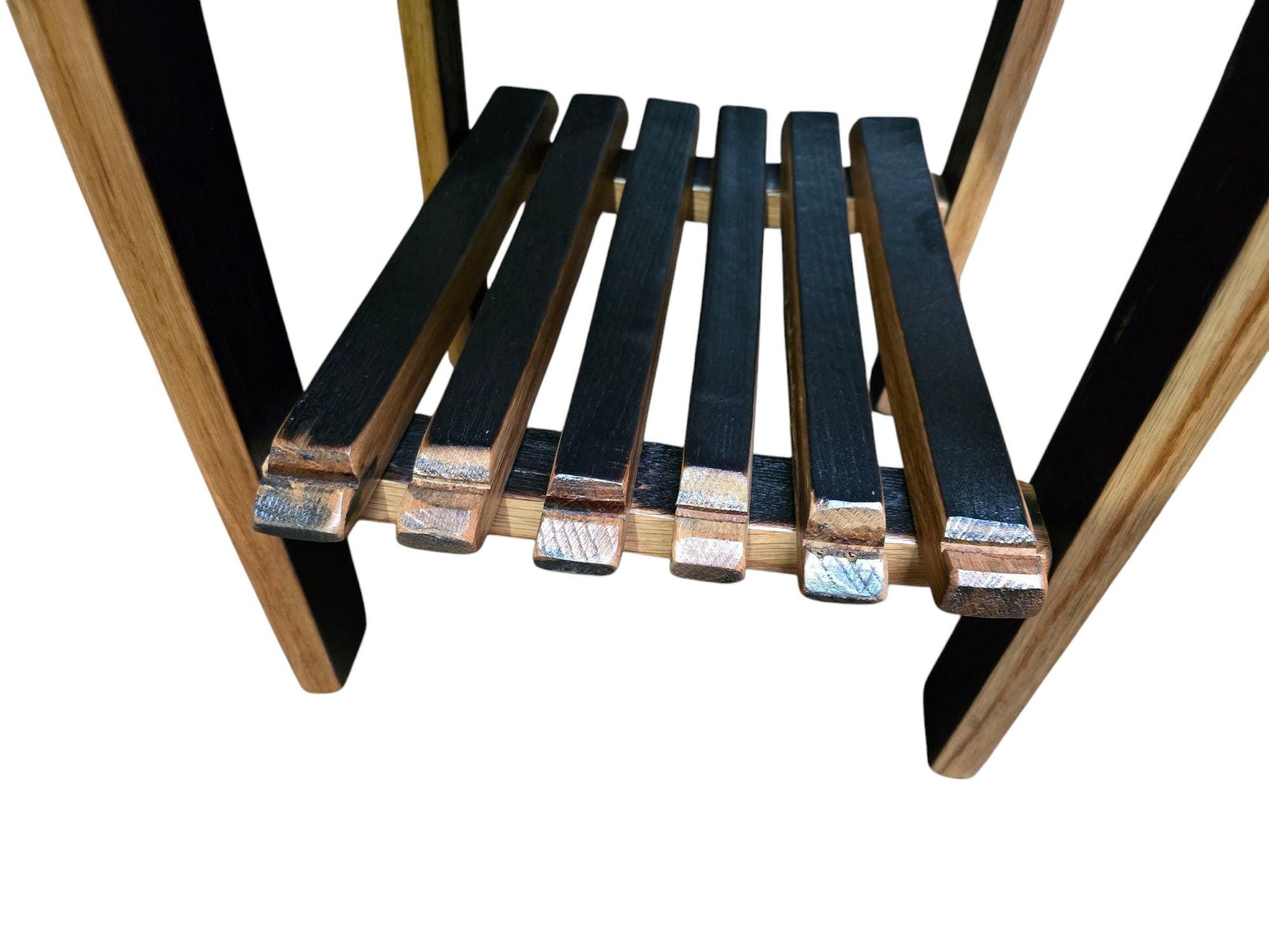 End Table Made of Burnt Hickory with Authentic Whiskey Barrel Stave Legs