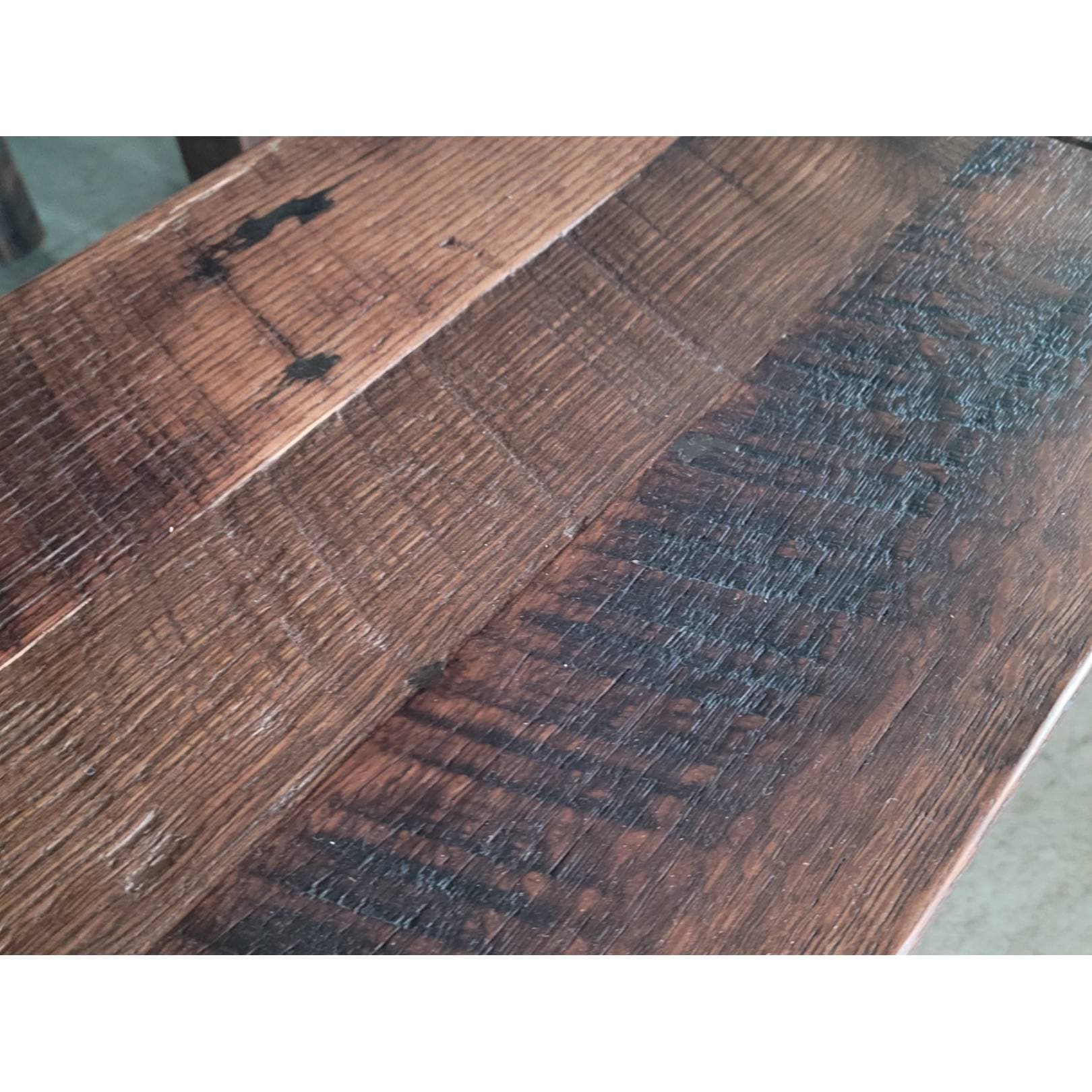 This dining set is crafted with strong and durable reclaimed oak barnwood, offering a rustic and authentic touch. The table measures 66"W x 42"D x 30"H, while the included bench is 56" with 2 leaves. Created by skilled Amish craftsmen, this set features a Pioneer Leg Table with 2 leaves, 4 reclaimed side chairs, and an adjustable length bench. The set will be delivered by experienced furniture carriers who provide white glove service. Your satisfaction is guaranteed. Curbside delivery is complimentary and standard, meaning your table will be unloaded and placed in your driveway or near your garage. In-home delivery is also available for a $125 charge, where your table will be brought inside and placed in any desired room.